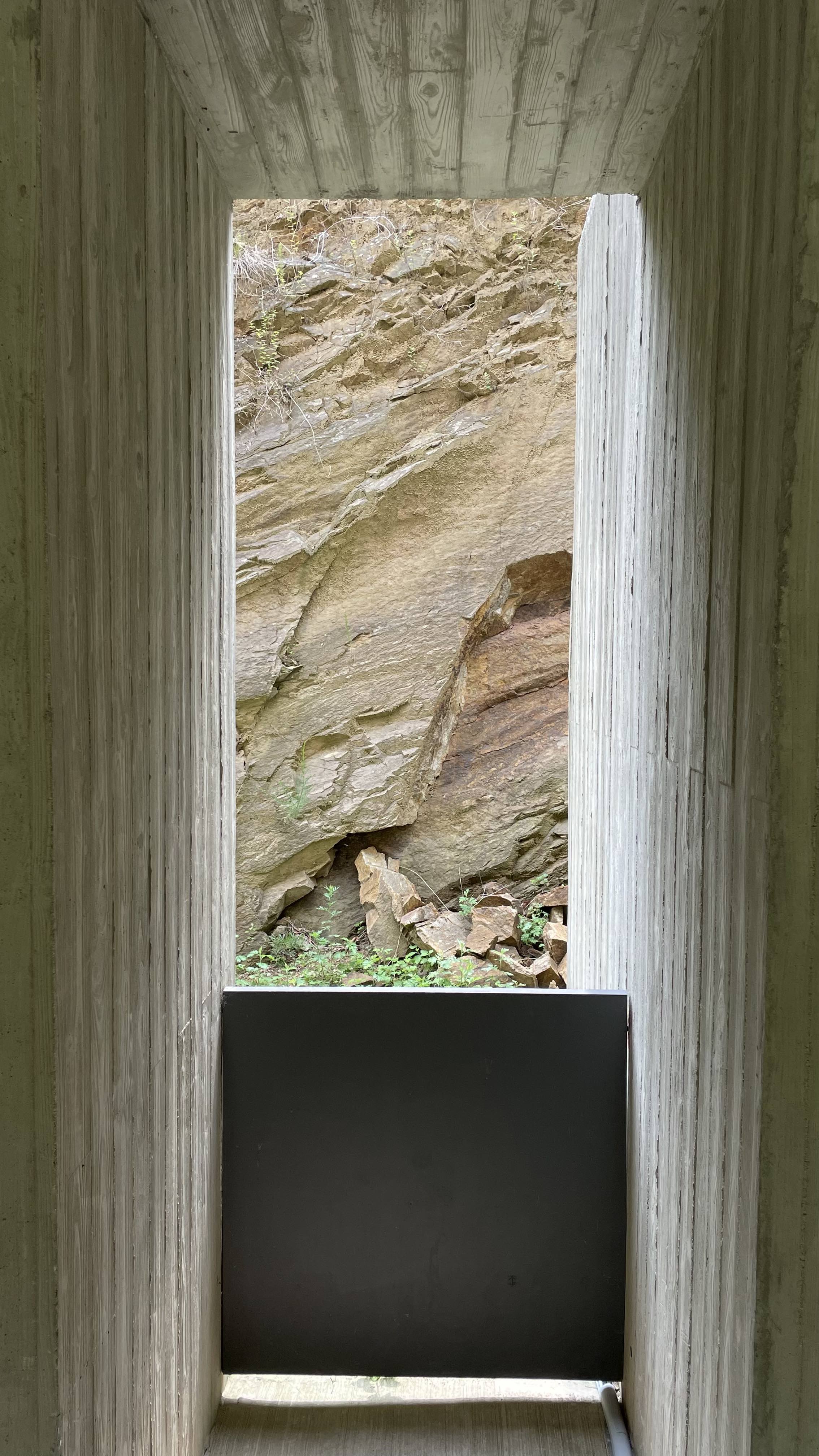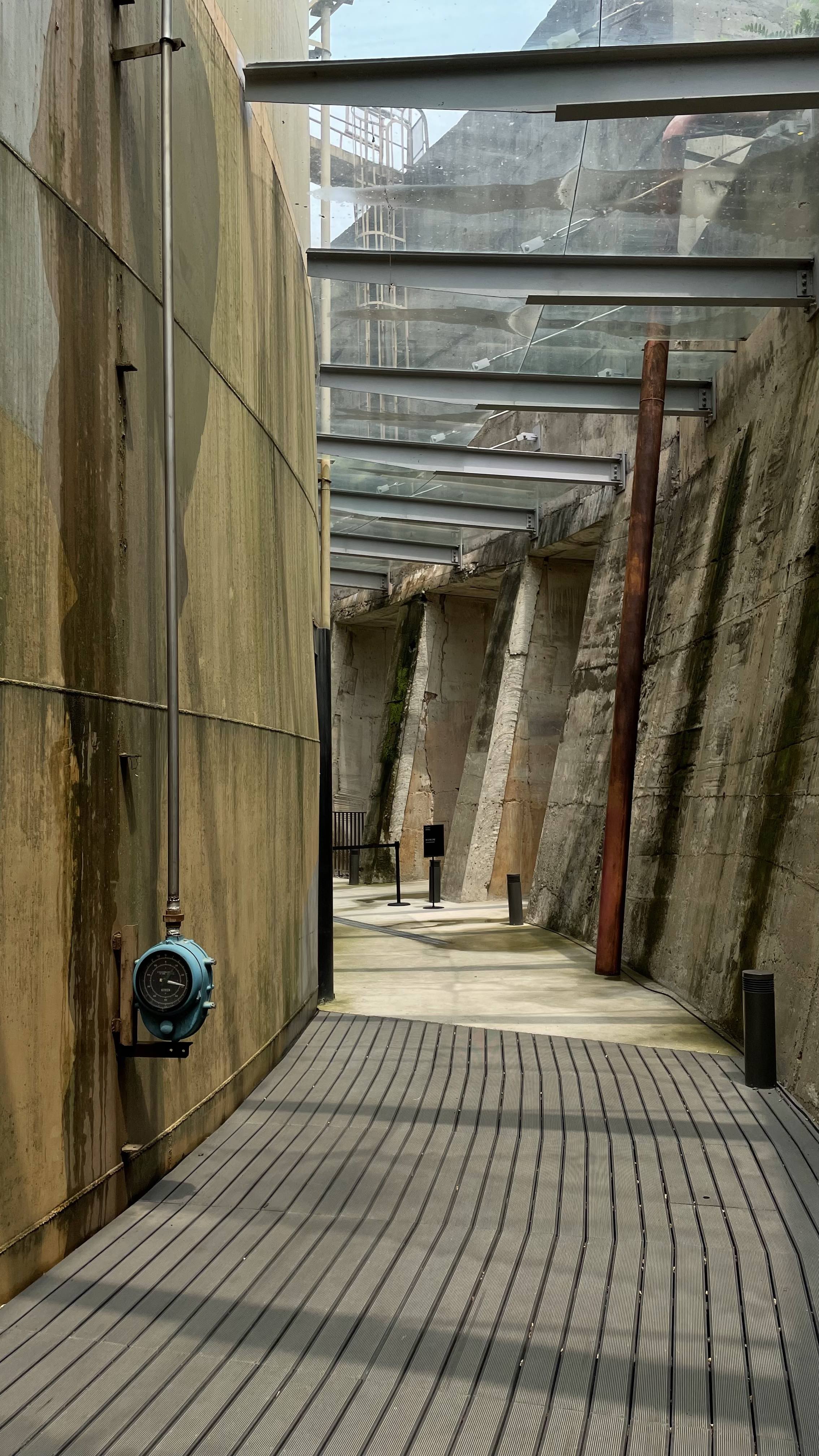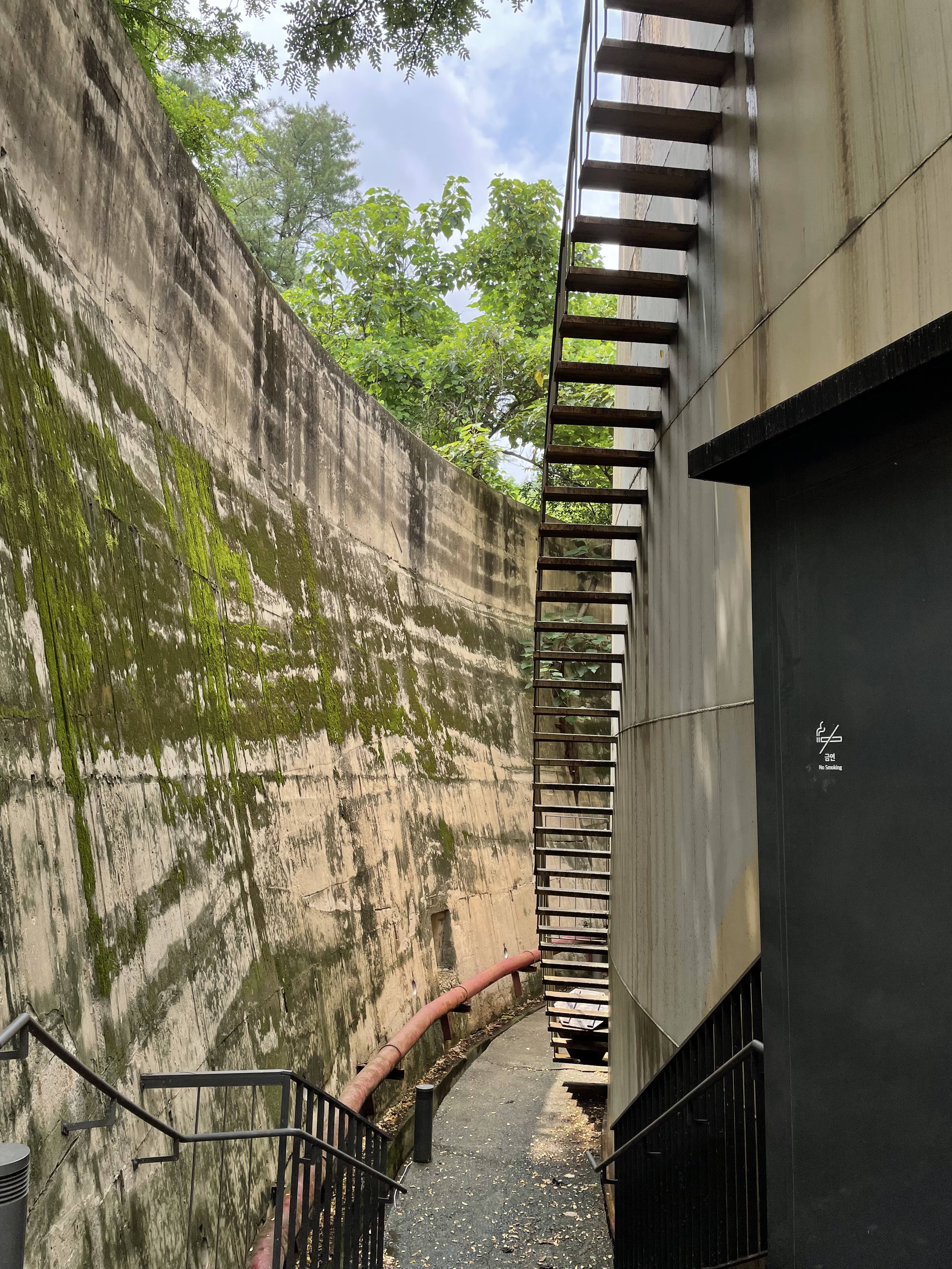 탱크 안과 밖, 탱크를 보호하던 옹벽과 매봉산의 암벽, 절개지를 모두 볼 수 있는 공간.