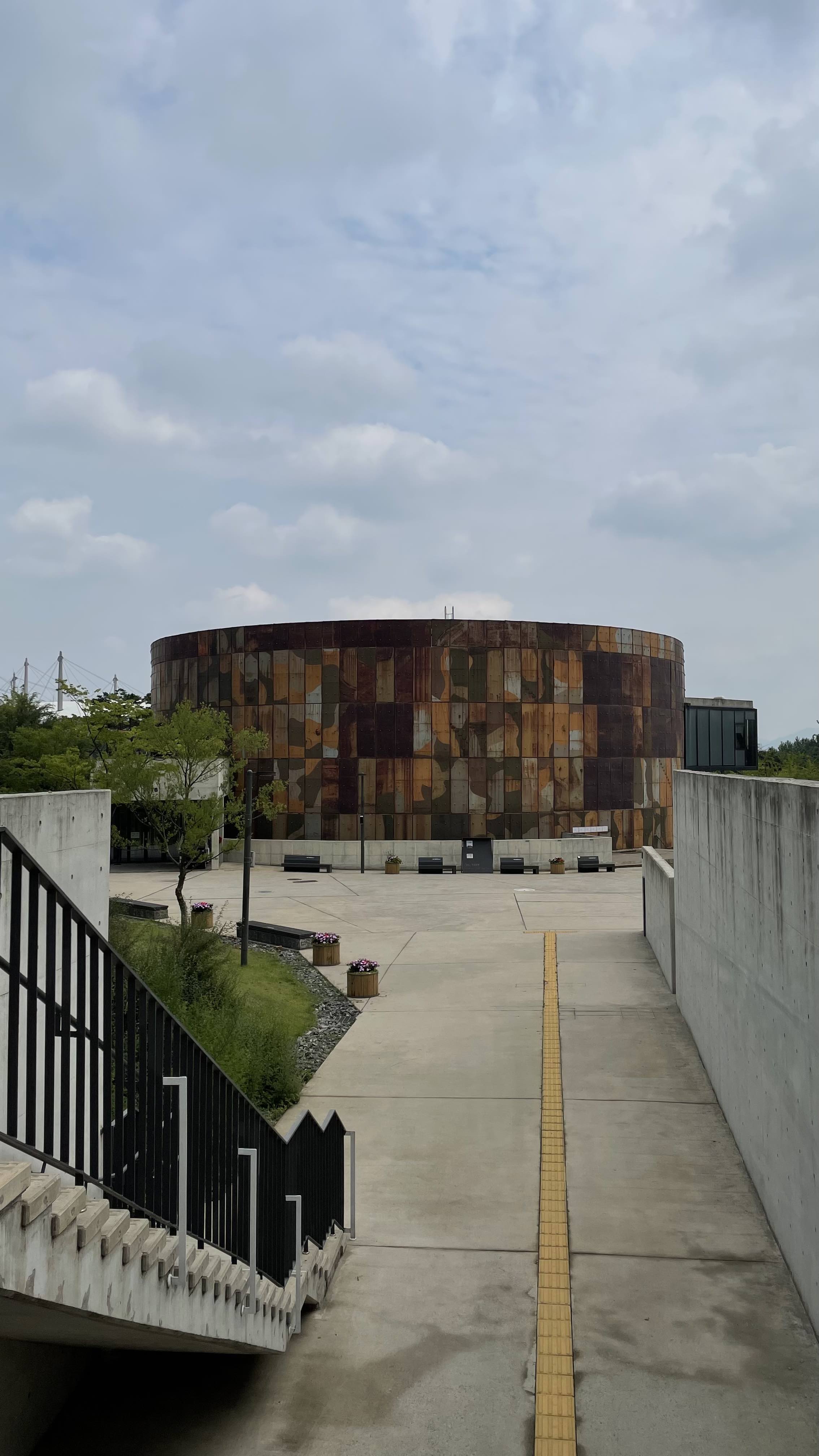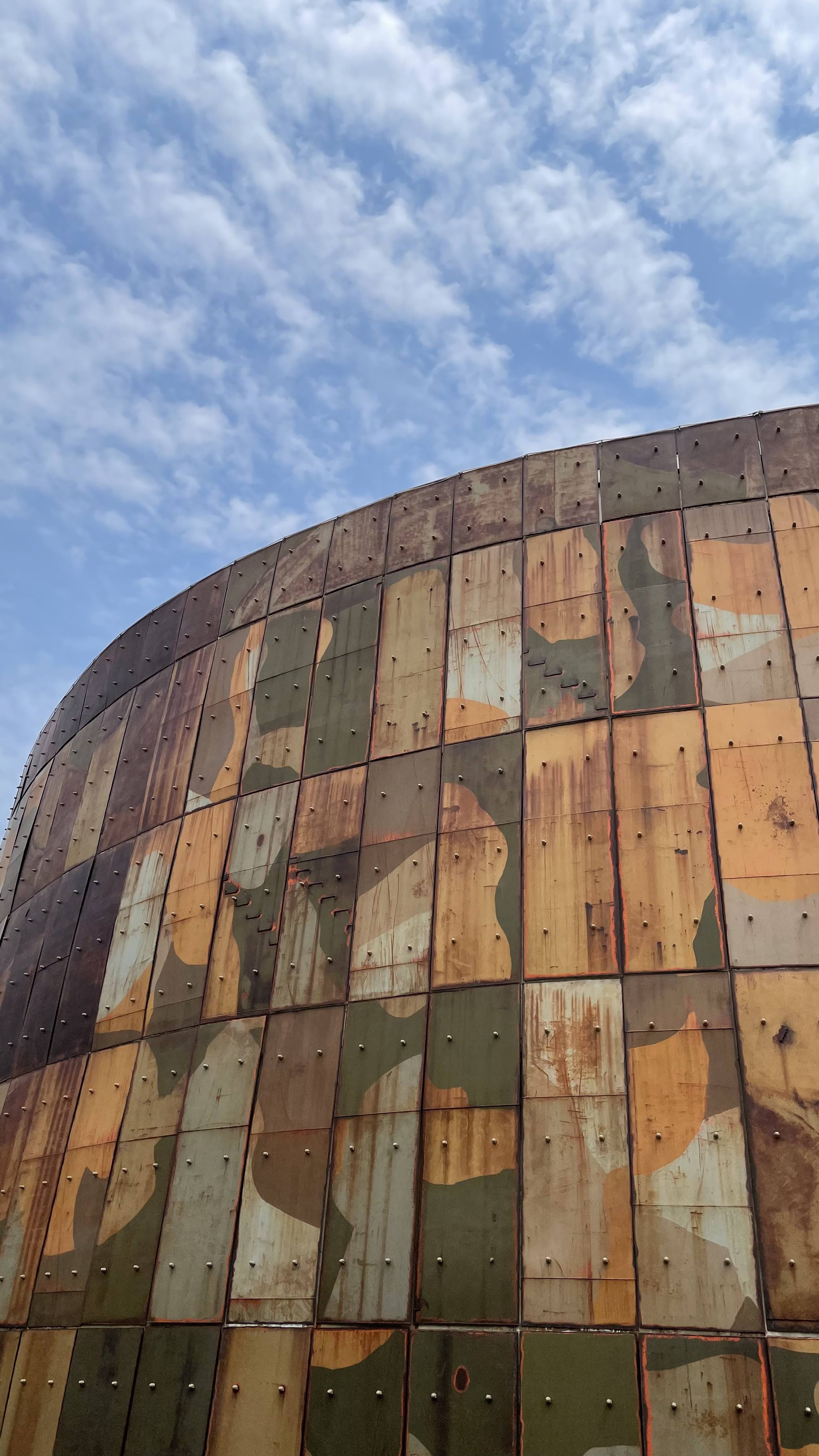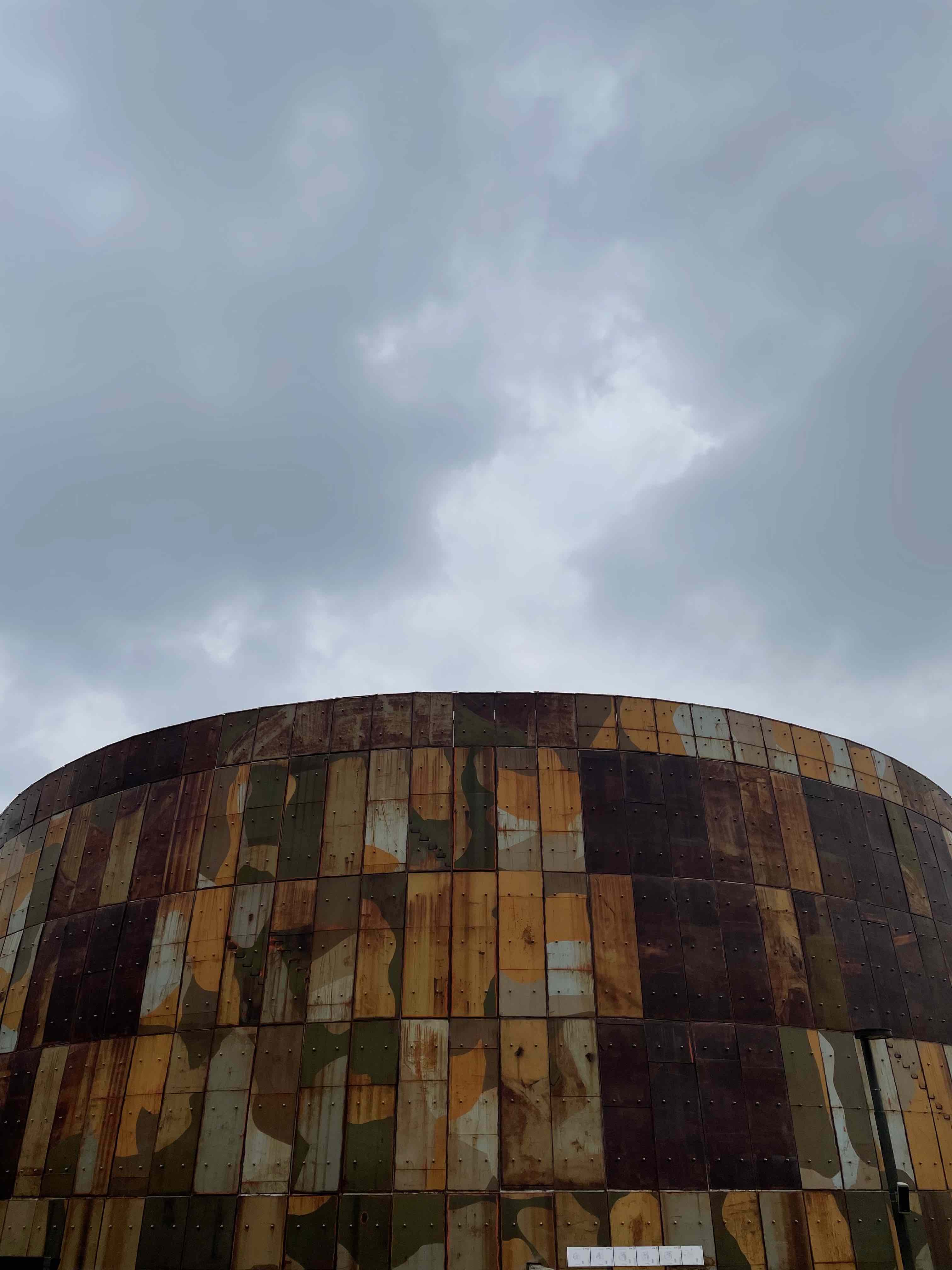 탱크의 외장재였던 철판을 해체하고 유리로 벽과 지붕을 만들어 탱크모양을 유지하고 있습니다.