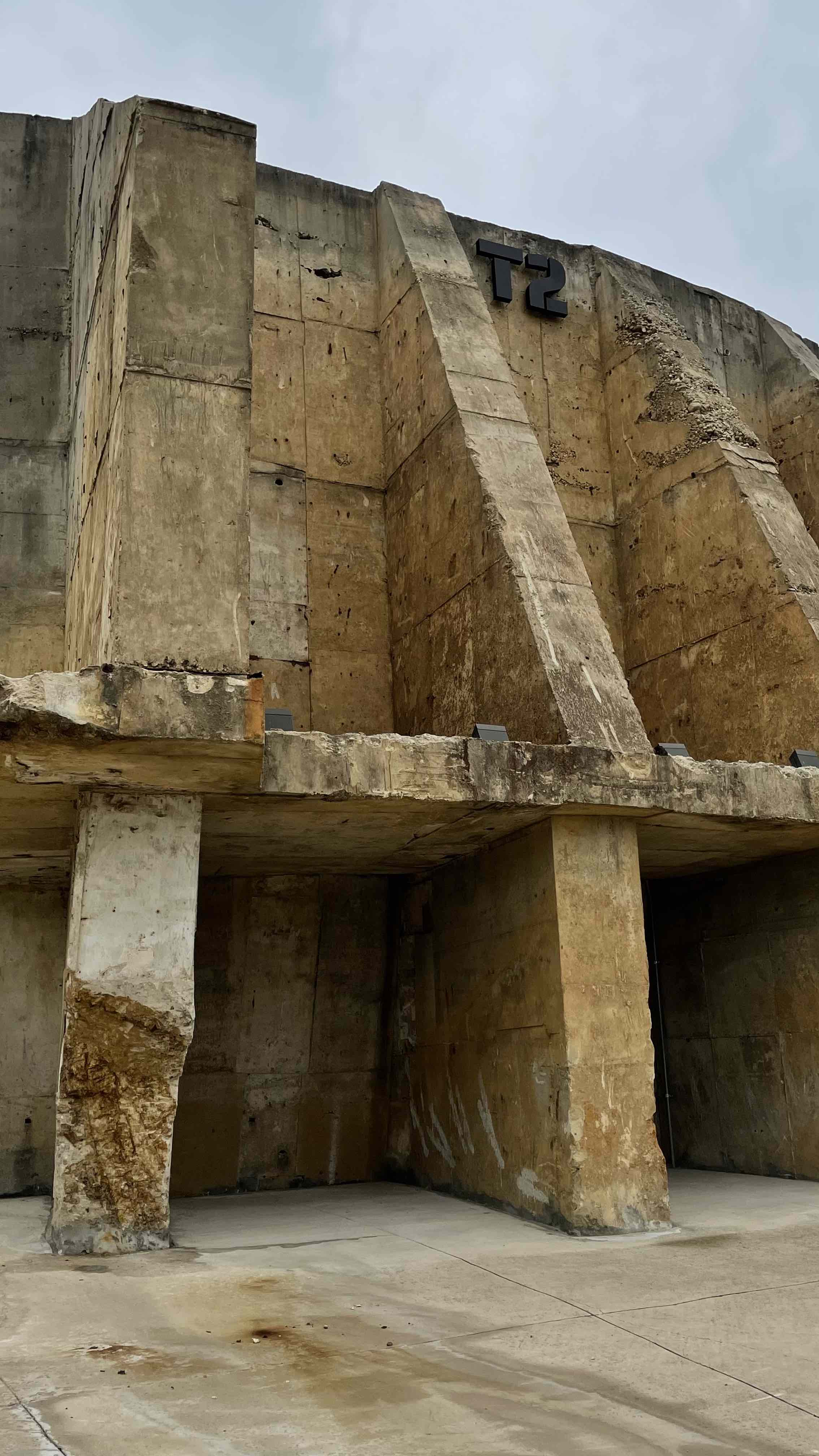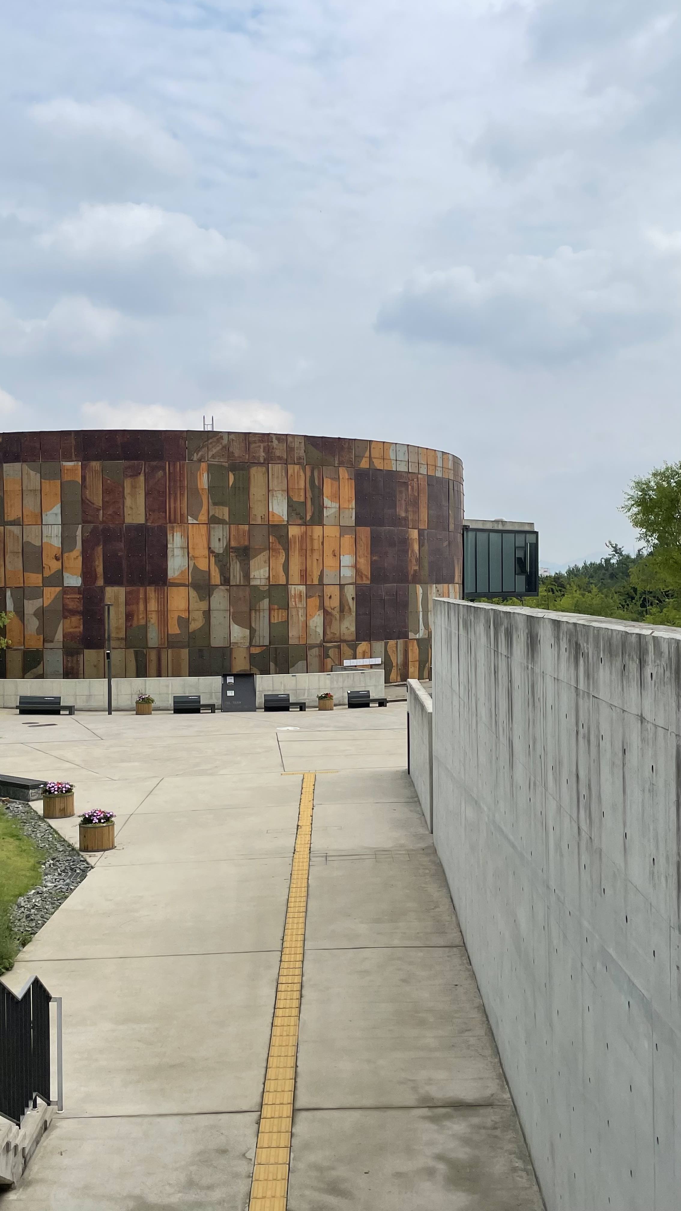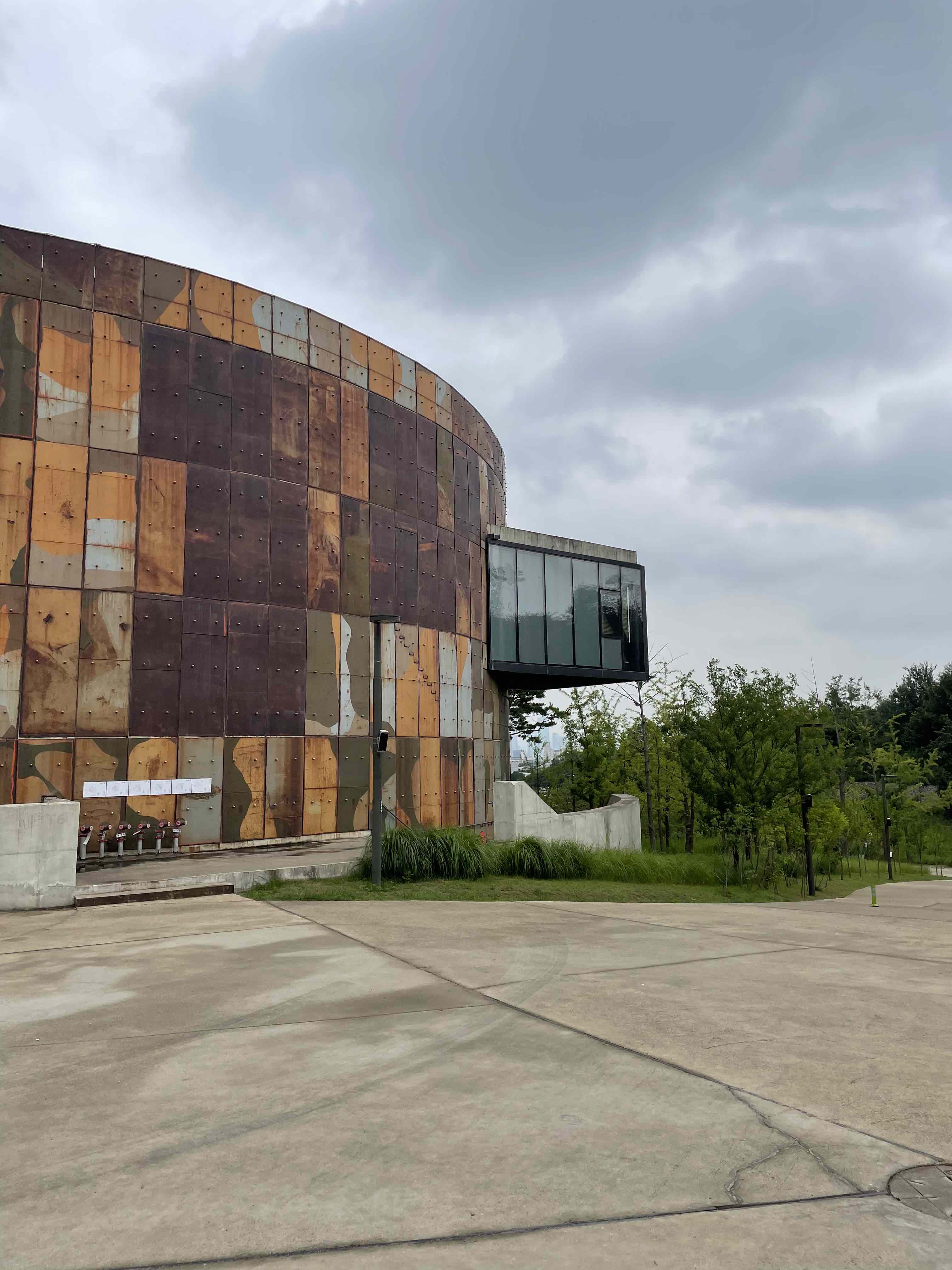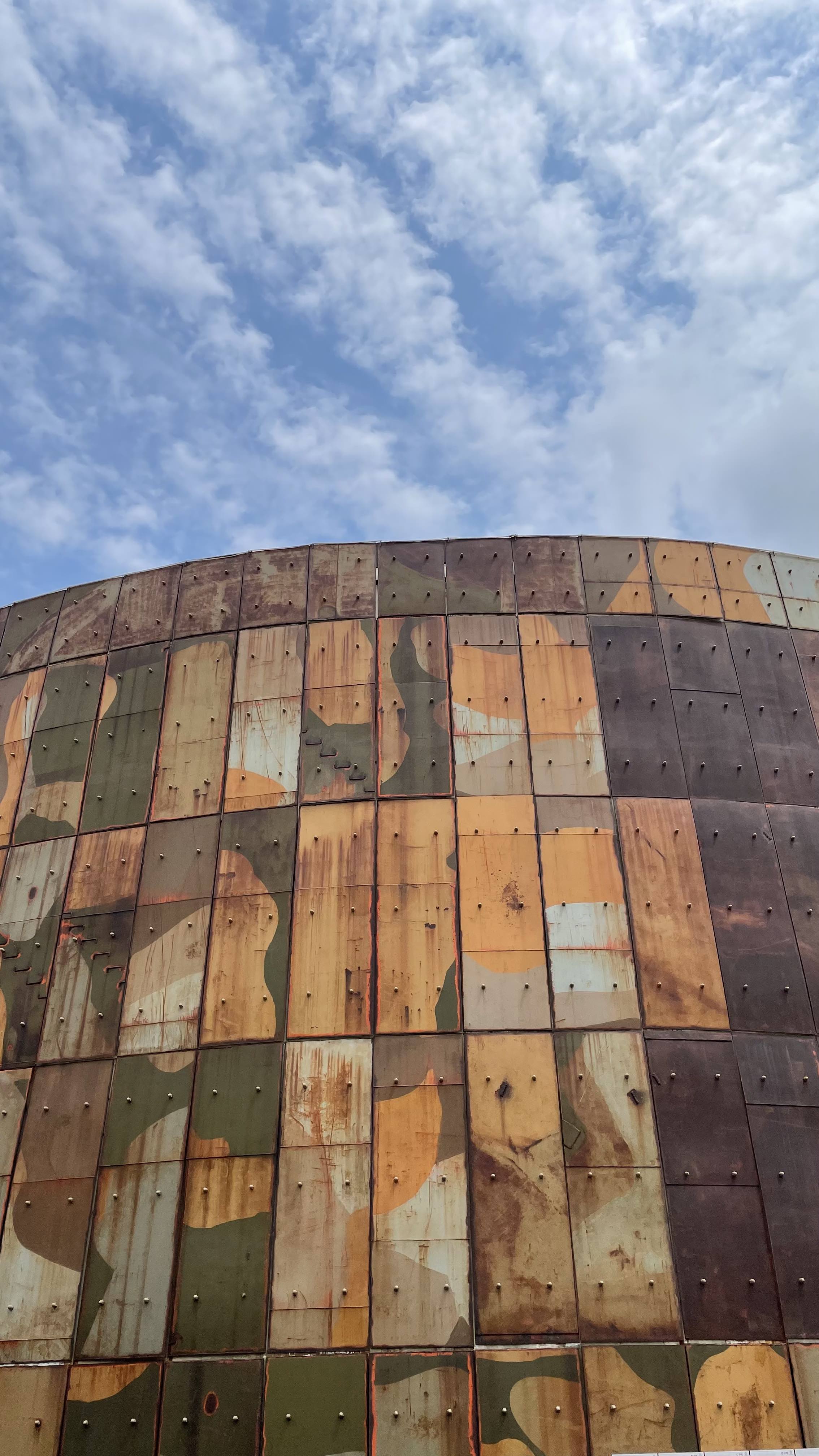 탱크의 외장재였던 철판을 해체하고 유리로 벽과 지붕을 만들어 탱크모양을 유지하고 있습니다.