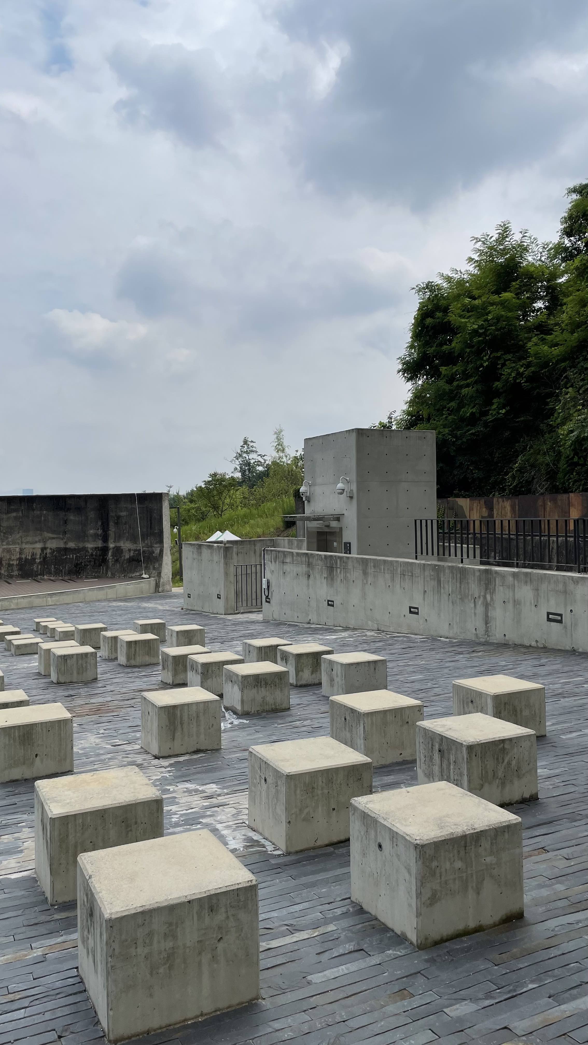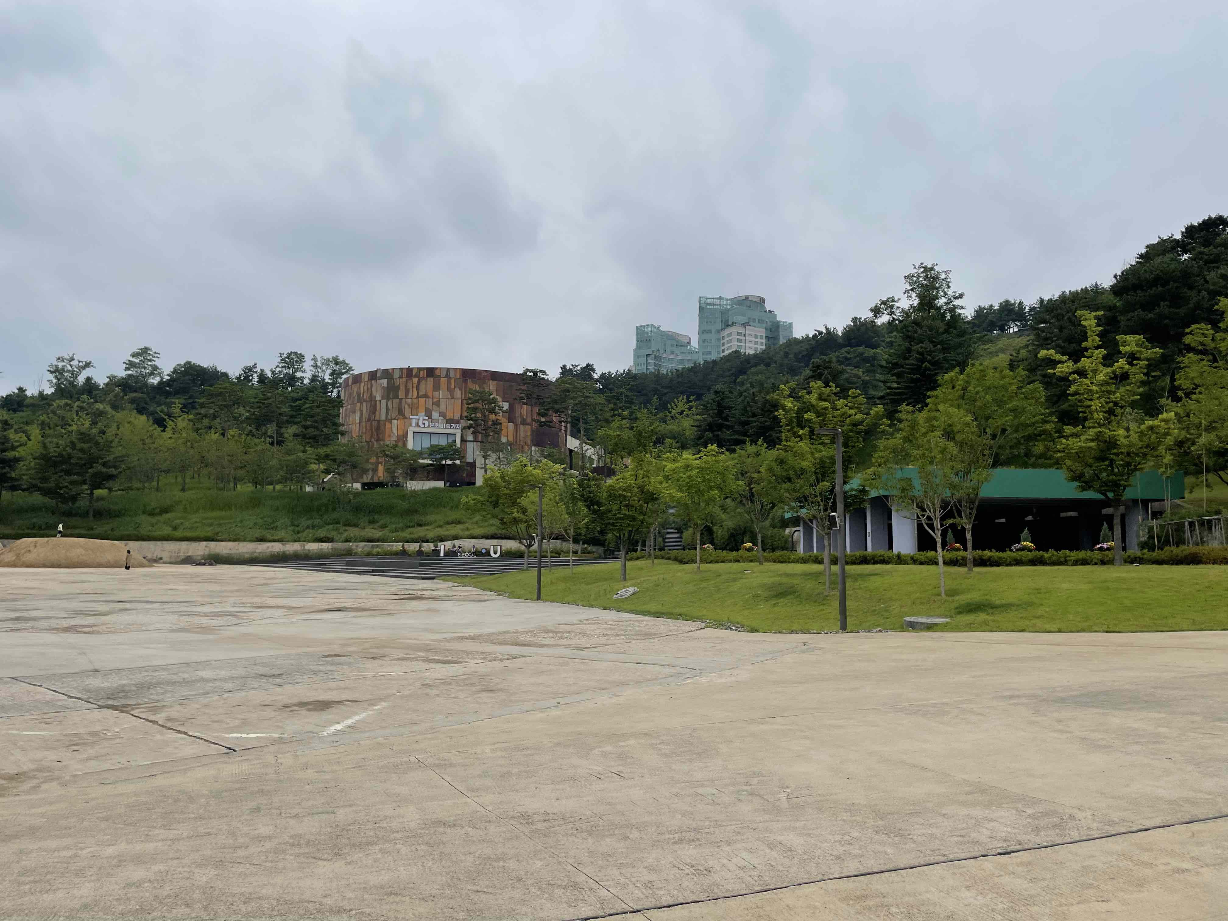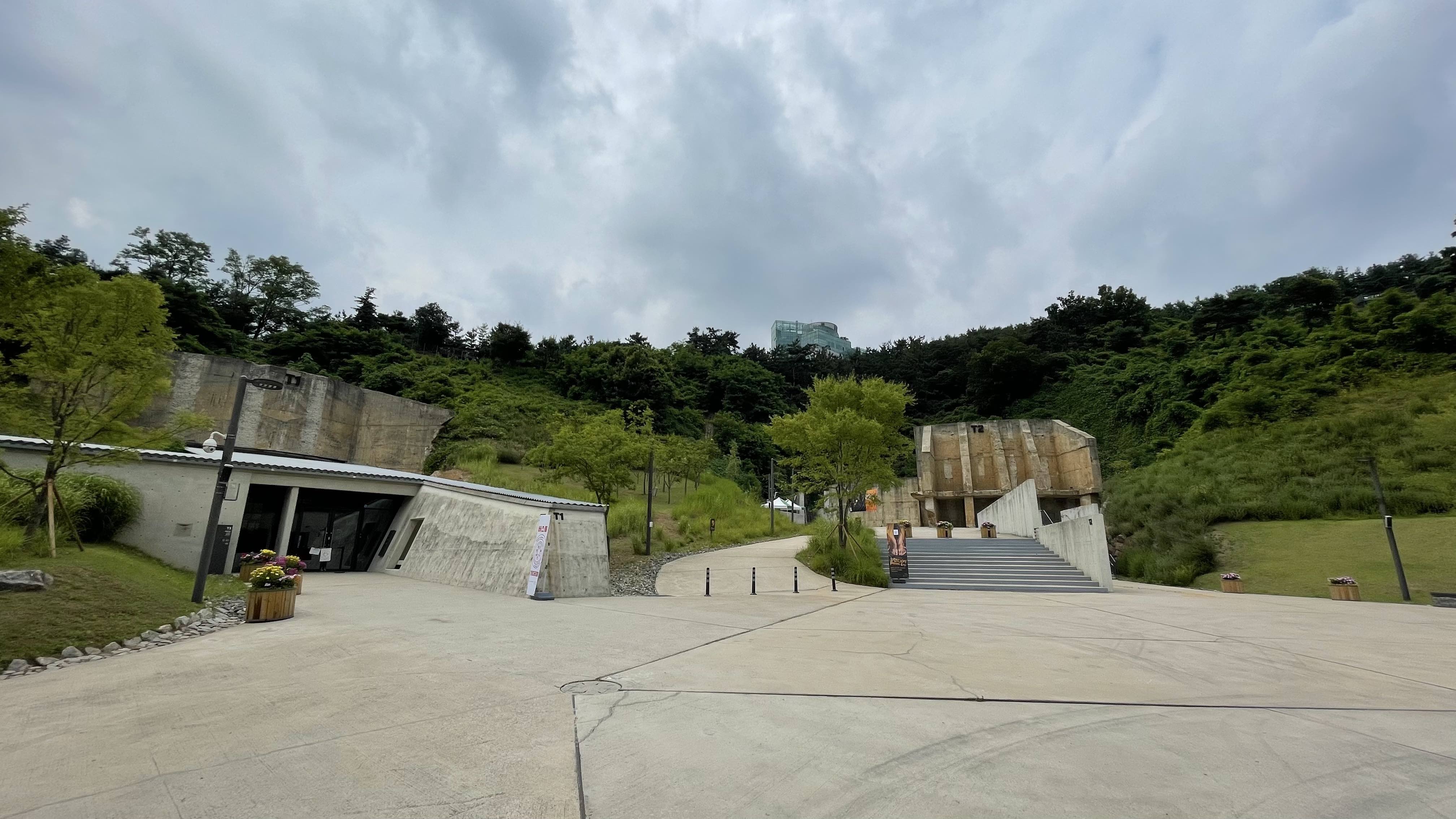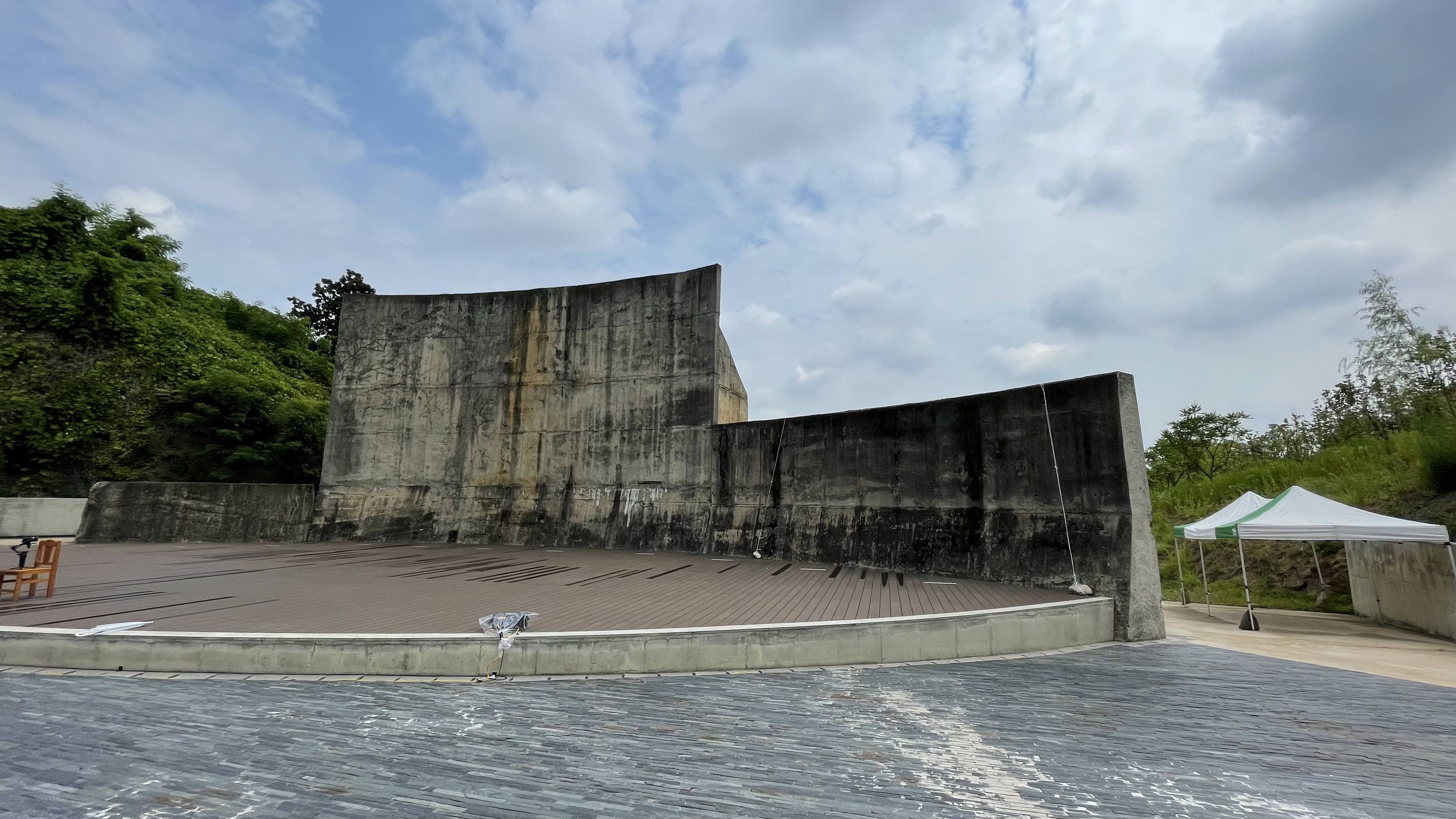 하늘을 향해 열린 야외무대와 옹벽은 매봉산의 암벽과 만나